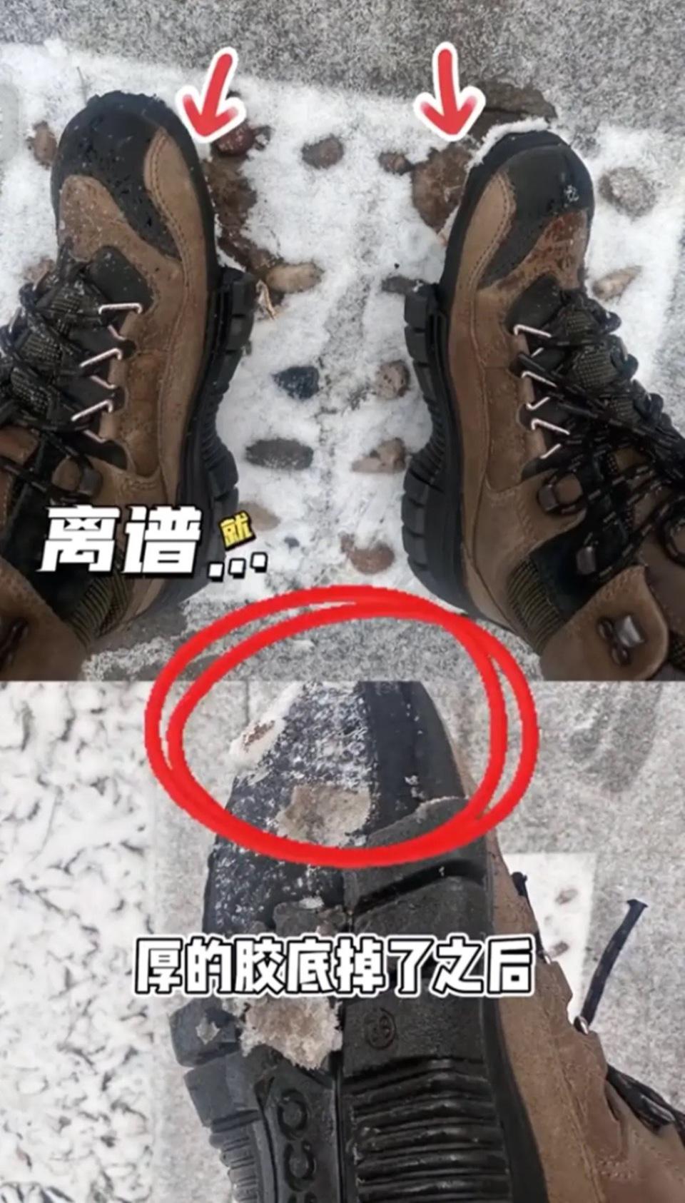 鞋子的底直接掉了一半,双脚直接踩进了雪里的感觉。方琼当时也很无语,不过好在才走了没几步,她又赶紧折返回家、重新换了一双鞋子。