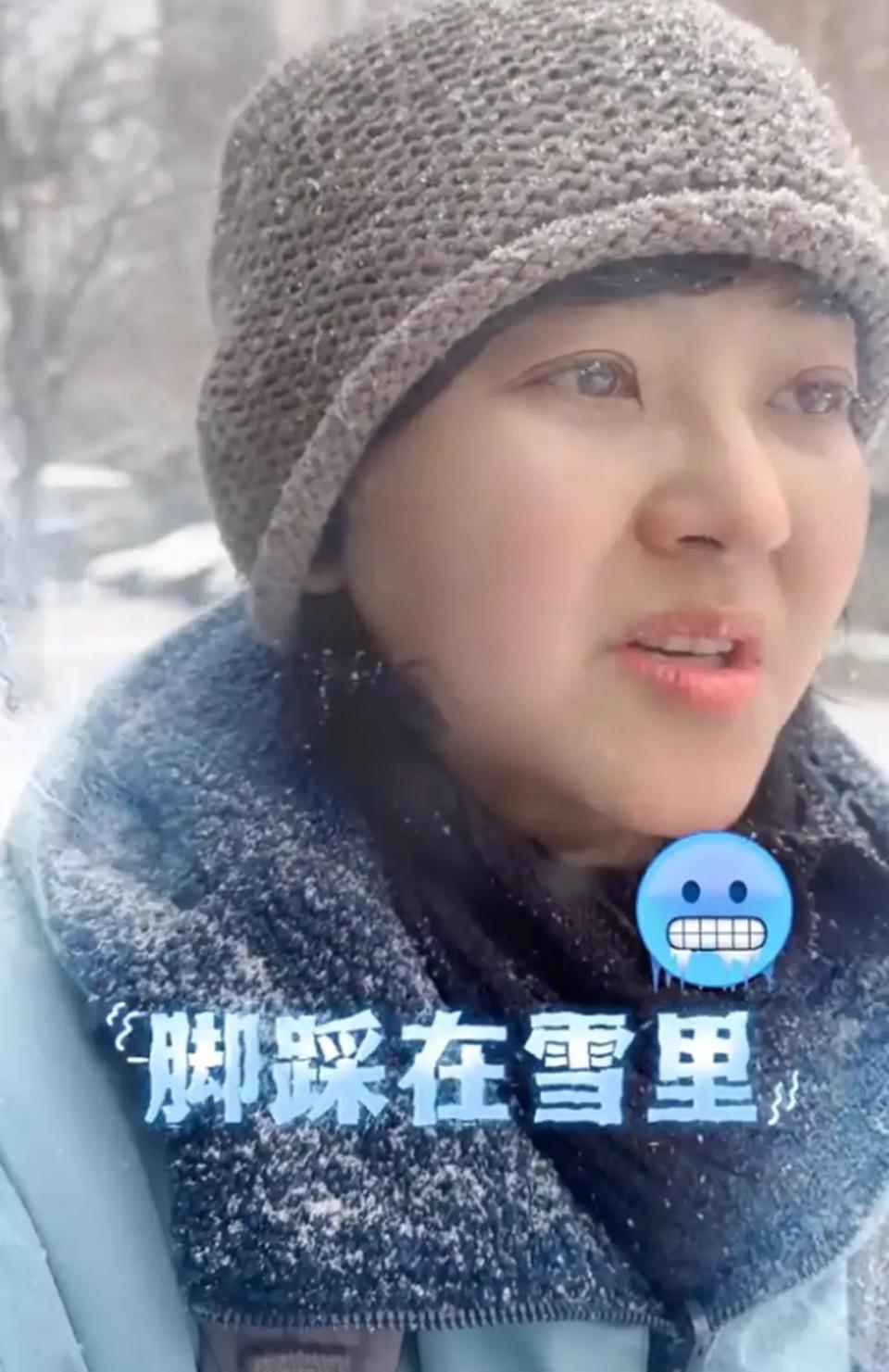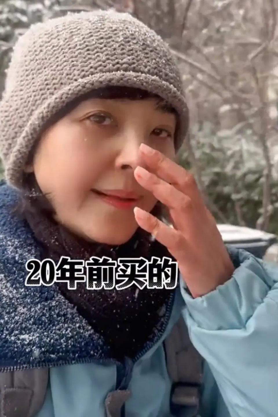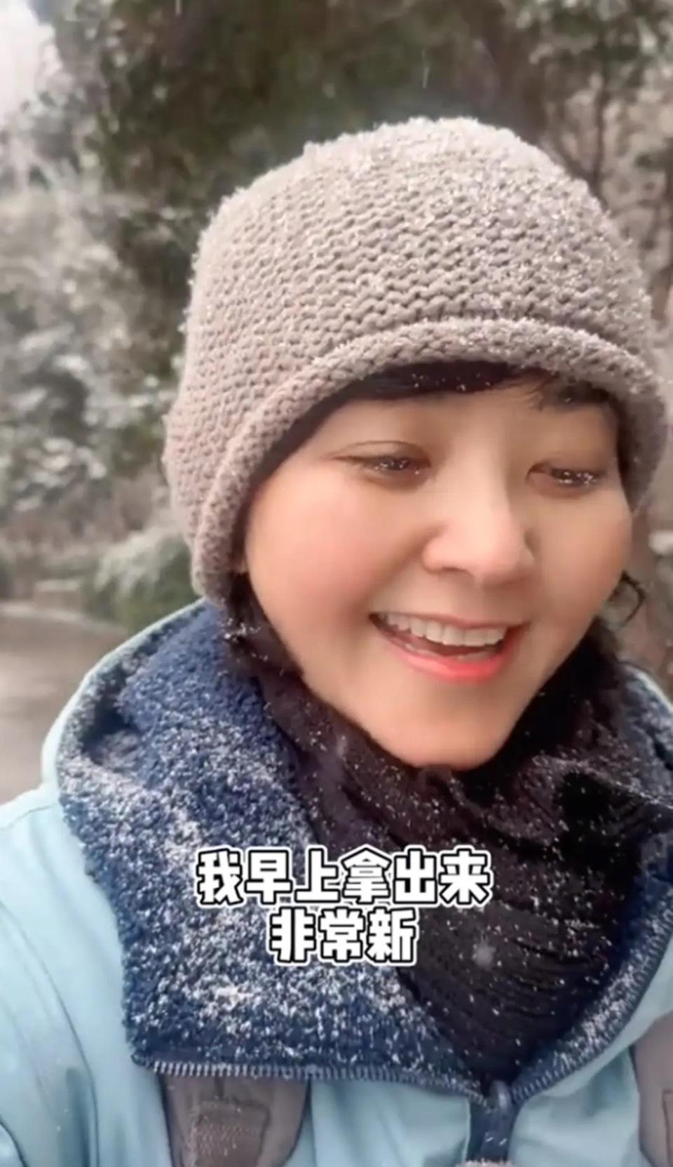方琼还提到,为了能开心的踩雪,她特意找出一双 20 年前的鞋子。因为下雪天、地面很容易结冰,为了防止摔倒方琼特意找了一双防滑鞋。